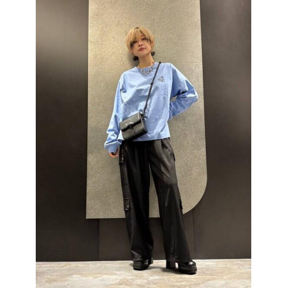 An embroidery design cut-and-sew with the H logo on the chest that looks like HARE! This is an excellent item as an inner garment for a cardigan or outer garment with a spacious length!