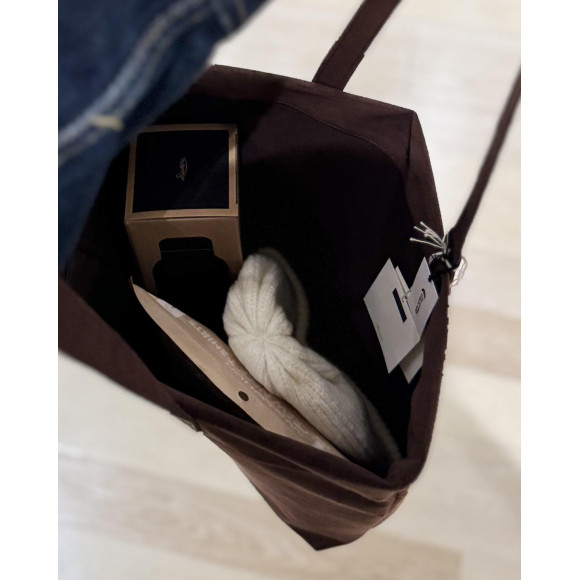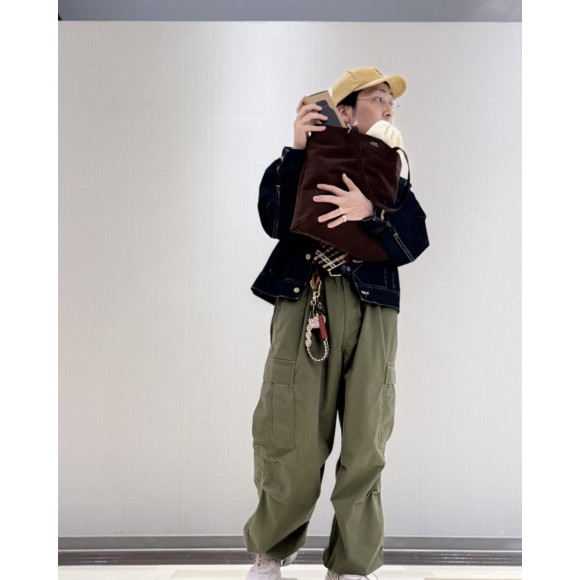 Autumn shopping style with brown tote bag that goes well with pop candy!