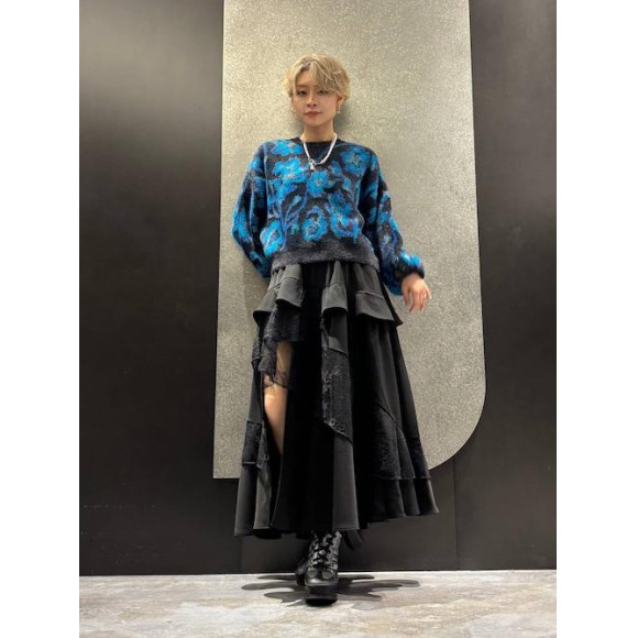 The skirt features a randomly overlapping frill on the asymmetry, with a voluminous silhouette and a single piece!