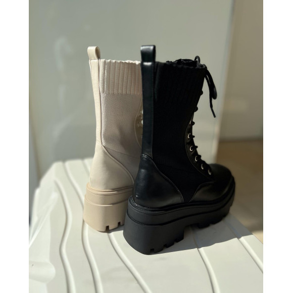 Track sole knit lace up middle boots