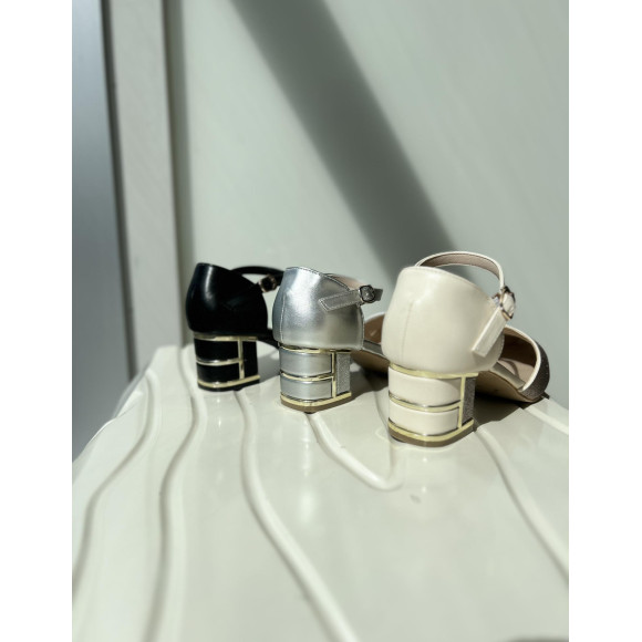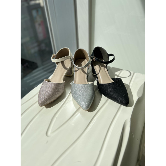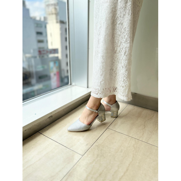 A fine lame and a gold design on the heel makes the back look fashionable.