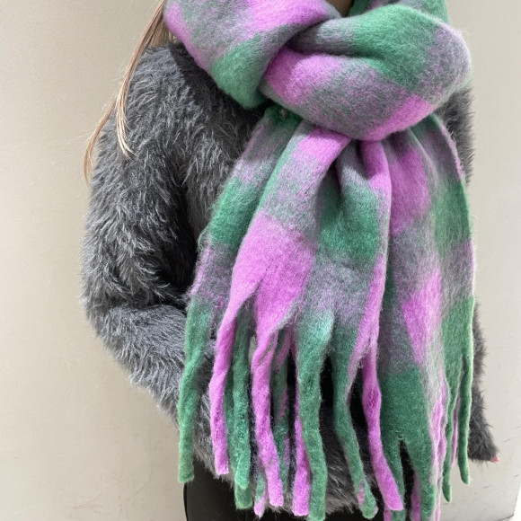 This is an introduction of a check pattern scarf that gives a sense of volume.♪