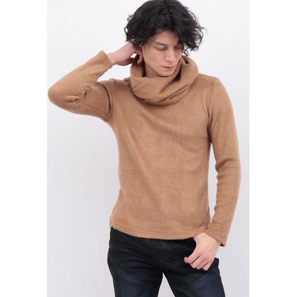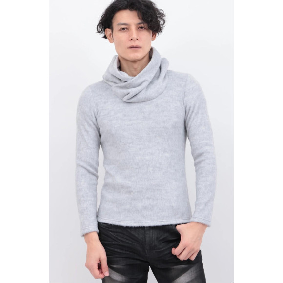 A knit sweater with a rough neck drape is accented with a wide variety of colors this season!