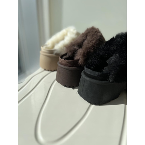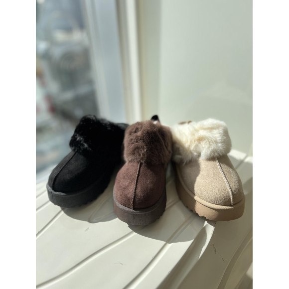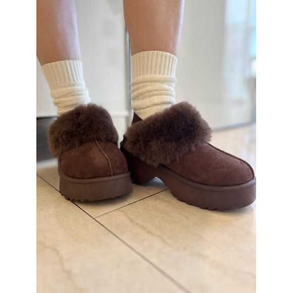 Smoothly textured fake fur is applied to the entire inner surface to the foot.